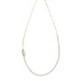 Μαργαριτάρια και φως ένα κολιέ από επιχρυσωμένο ασήμι 925 και μαργαριτάρια. Το μήκος του κολιέ αυτού είναι εβδομήντα εκατοστά (70). Αποτελείται από τριάντα τέσσερα οβάλ μαργαριτάρια (34). Στη μία πλευρά συνεχίζει όμορφα ένα κλαδί με φύλλο από ασήμι 925 σε κίτρινο χρώμα (επιχρυσωμένο). Το φύλλο είναι διακοσμημένο με έντεκα μικρές ημιπολύτιμες πέτρες που ονομάζονται αιματίτες.
