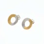 Μικροί κύκλοι σκουλαρίκια από ασήμι 925. Η μισή επιφάνεια είναι ματ και λευκή , ενώ η άλλη μισή κίτρινη (επιχρυσωμένη). Η διάμετρος του κύκλου είναι ένα εκατοστό (1). Το κούμπωμα είναι καρφάκι (περνάει δηλαδή μέσα στο αυτί). Το σχέδιο είναι του Α. Ράλλη.