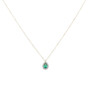 Gold teardrop μενταγιόν από χρυσό δεκατέσσερα καράτια (14κ). Στο κέντρο του βρίσκεται μια υπέροχη πέτρα σε σχήμα δάκρυ, η οποία είναι ζιργκόν και το χρώμα της είναι ένα πλούσιο βαθύ πράσινο. Περιφερειακά το στολίζουν είκοσι μικρά ζιργκόν σε λευκό χρώμα. Το μήκος της αλυσίδας του είναι σαράντα πέντε εκατοστά (45cm).