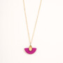 Olee foux -viole μενταγιόν από ασήμι 925 και ορείχαλκο. Ένα υπέροχο ημικύκλιο με μήκος δύο εκατοστά(2 cm) και διάμετρο ένα εκατοστό (1 cm).Στο κέντρο του μια όμορφη σταγόνα με μήκος ένα εκατοστό (1 cm ) και διάμετρο μισό εκατοστό (0,5 cm).Η επιφάνεια του είναι ζωγραφισμένη με σμάλτο σε ένα τέλειο φούξια βιολετί χρώμα! Η αλυσίδα του είναι από ασήμι 925.Έχει μήκος σαράντα πέντε εκατοστά (45 cm).Είναι  επιχρυσωμένη (gold plated).