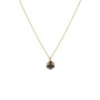 Peace and love μενταγιόν. Σε κίτρινο χρυσό δεκατέσσερα καράτια(14κ).Ένας μικρός και διακριτικός κύκλος με διάμετρο μισό εκατοστό (0,5) που είναι στολισμένος με δέκα λευκά ζιργκον (10) και δέκα μαύρα ζιργκον (10).Οι μαύρες πέτρες του σχηματίζουν το σήμα της ειρήνης. Με αυτό τον τρόπο δημιουργείται μια εξαιρετική αντίθεση λευκού μαύρου. Η αλυσίδα του έχει μήκος σαράντα εκατοστά (40) μαζί με το κούμπωμα.
