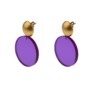 Purple rain σκουλαρίκια από ασήμι 925 και plexiglass. Το πάνω μέρος είναι ένας μικρός επιχρυσωμένος κύκλος σε κίτρινο χρώμα. Η διάμετρος του είναι ένα εκατοστό (1). Στο πίσω μέρος του δημιουργείται ένα ελαφρύ βαθούλωμα και εκεί βρίσκεται και το κούμπωμα καρφάκι( αυτό που περνάει μέσα στο αυτί). Το κάτω μέρος είναι ένας μεγαλύτερος κύκλος από μοβ plexiglass , με διάμετρο δύο και μισό εκατοστό (2,5).